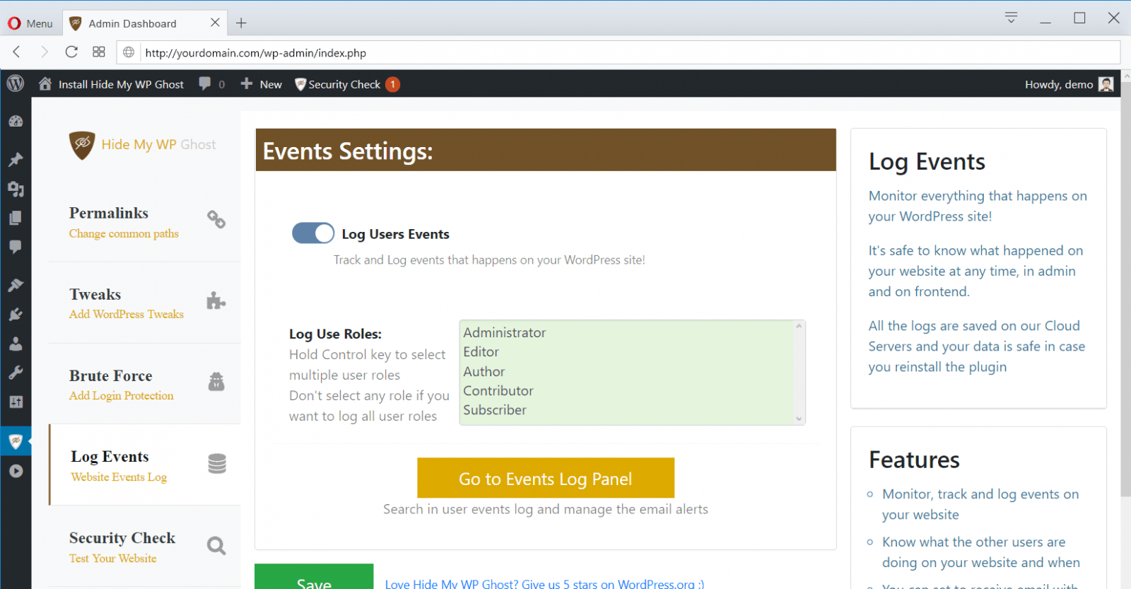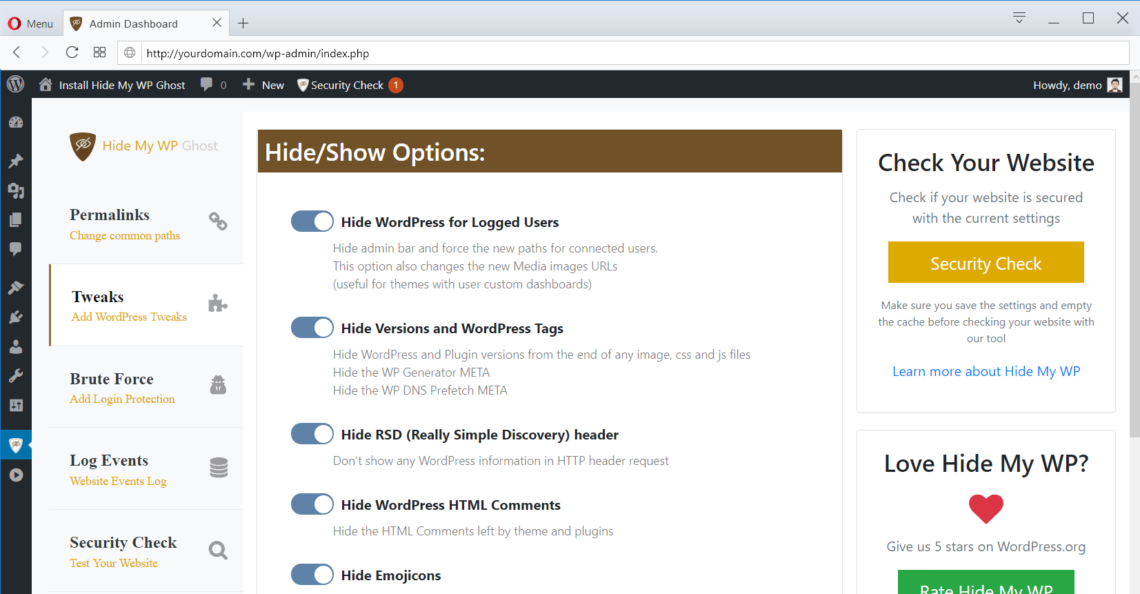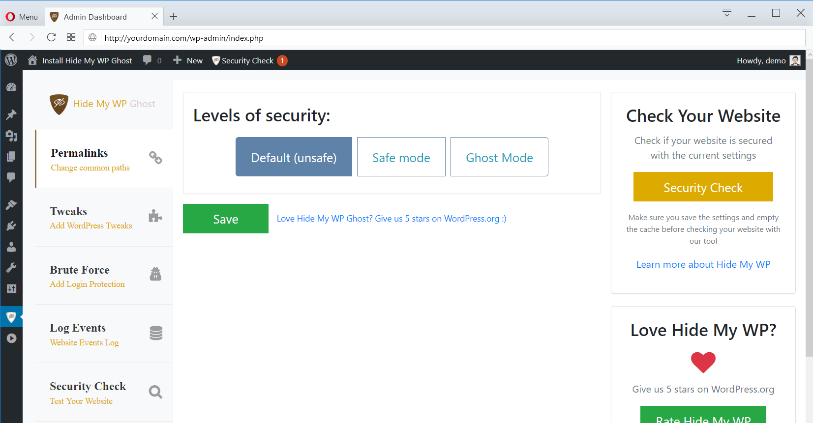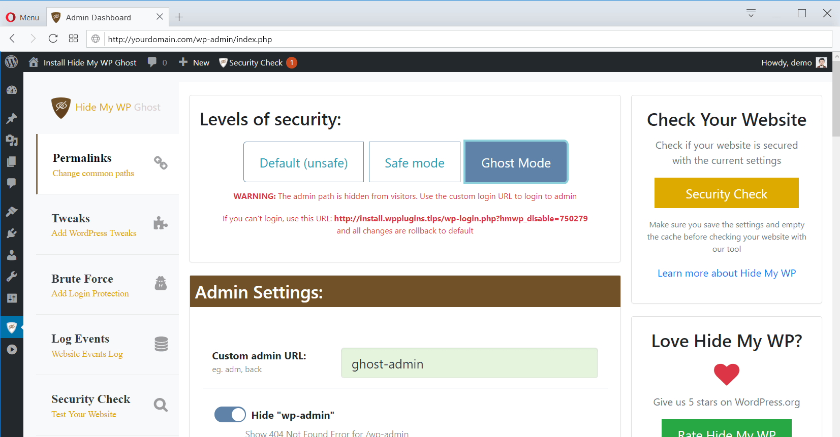 Hide My WP Ghost Características de Seguridad::