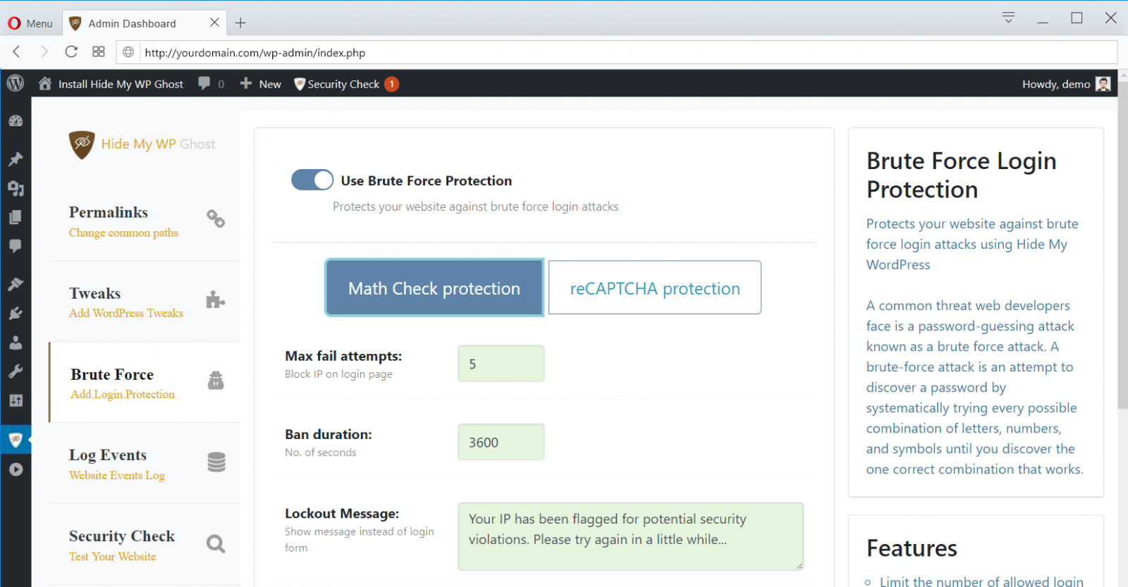 - Protección de fuerza bruta con Math Captcha