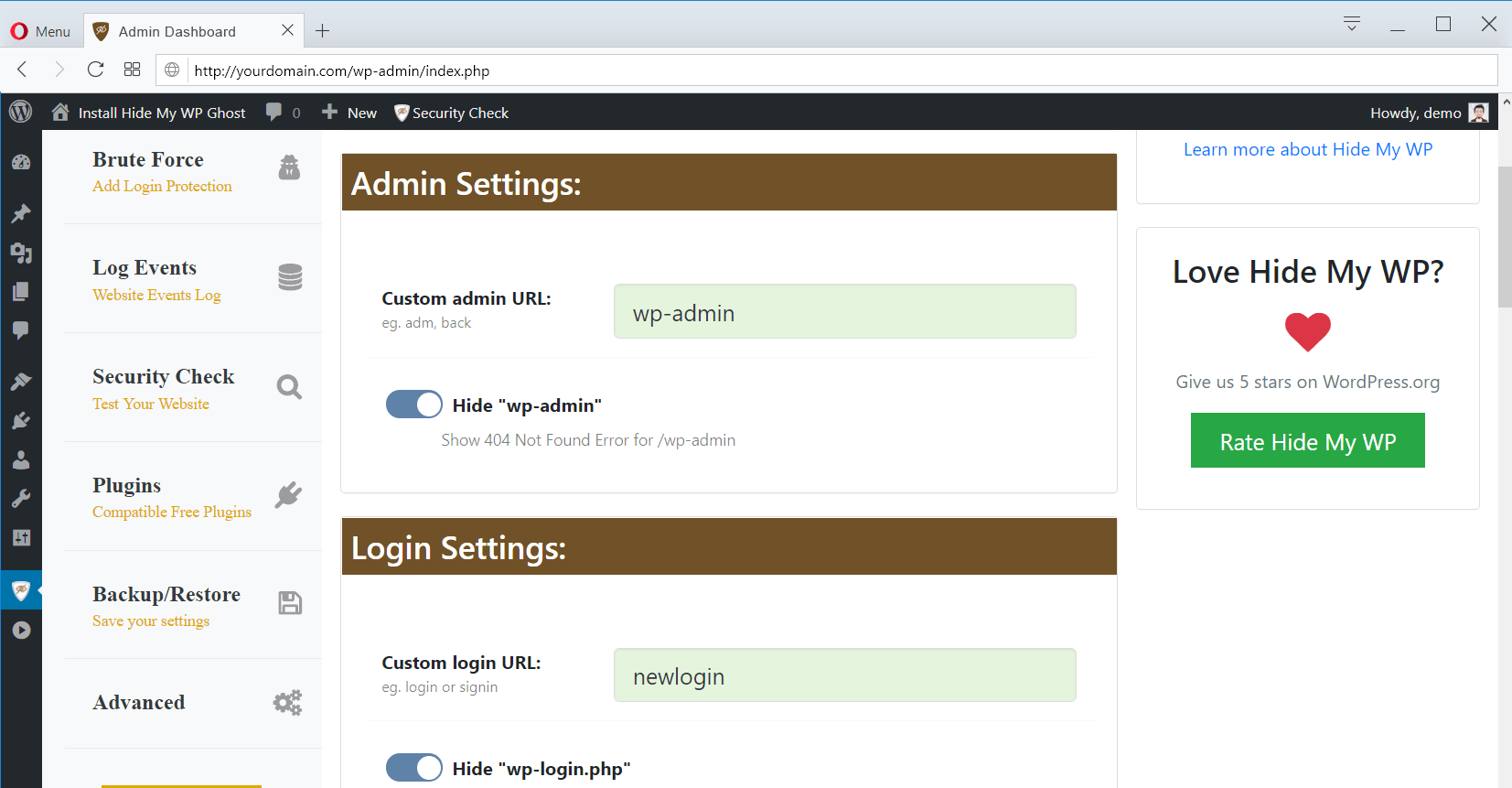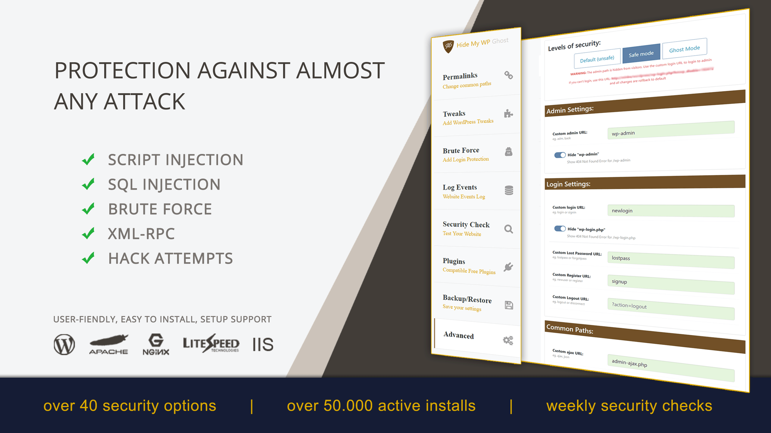 Hide My WP Ghost Características de Seguridad::